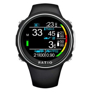 Em até 6x de R$1.291,50  sem juros À vistaR$7.284,04no Pix		Ratio Computador De Mergulho Idive Color Tech+