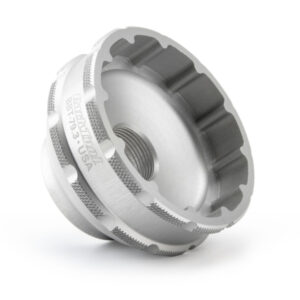 O BBT-47 da Park Tool é uma ferramenta de precisão feita de alumínio fresado em CNC para montagem e desmontagem de suportes inferiores rosqueados com 12 ou 16 entalhes.