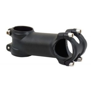 Haste robusta para uso em mountain bike e mountain bike. Haste com placa frontal estável de 4 parafusos para distribuição otimizada da força de fixação, maior rigidez e redução de peso.