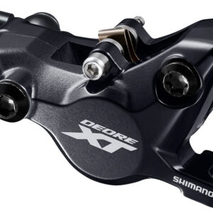 A pinça de freio hidráulica de 2 pistões XT BR-M8100 da Shimano para frente ou traseira com pastilhas de disco Post-Mount e G04S Metal.
