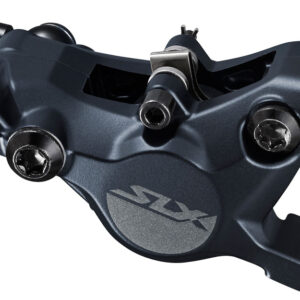 A pinça de freio hidráulica de 2 pistões SLX BR-M7100 da Shimano para frente ou traseira com pastilhas de disco Post-Mount e G04S Metal.