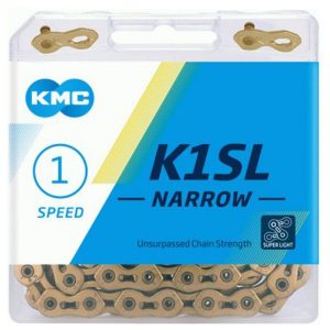 A corrente K1SL Narrow Single speed com revestimento de superfície Titanium Nitride Gold para BMX e qualquer outra velocidade única/engrenagem interna.