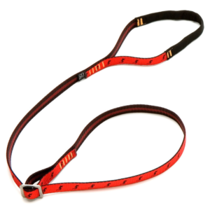 Estribo para jumar. Possibilidade de regular seu comprimento por meio de uma fivela de metal.