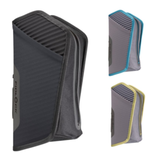 O novo alforje da Fizik é feito de poliéster revestido de PU durável e possui um zíper repelente à água que, em combinação com costuras soldadas, protege o conteúdo das intempéries