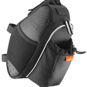 O alforje com capacidade de 1,7 litro oferece espaço suficiente para ferramentas e barras energéticas.