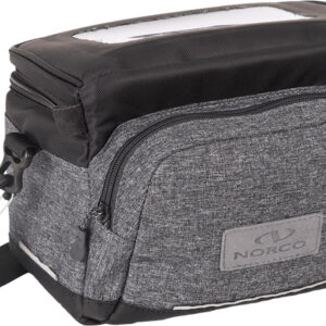 A compacta bolsa de guidão Norco Ashby KLICKfix em design moderno com tecidos feitos de material plástico reciclado.