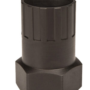 Remove o anel de travamento de cassetes compatíveis com Shimano e sistemas de cubo de freio a disco com trava central.
