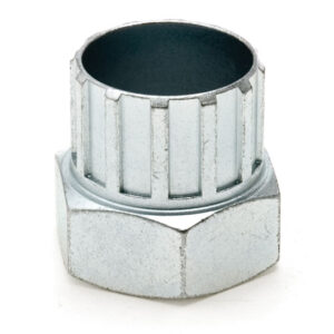 A ferramenta de remoção de roda dentada Rohloff deve ser usada em conjunto com um chicote de corrente e uma chave de 24 mm para remover as rodas dentadas rosqueadas originais de um SPEEDHUB.