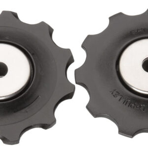 Conjunto de polias Shimano Premium MTB para grupo XTR M9100 de 12 velocidades. Rolamentos selados de precisão nas polias guia e tensora mantêm a transmissão suave e sem atrito.