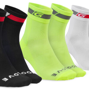 O conjunto de meias de ciclismo de verão GripGrab Tricolore é um pacote de três meias de ciclismo de verão Coolmax® de corte regular: preto, branco e amarelo de alta visibilidade.