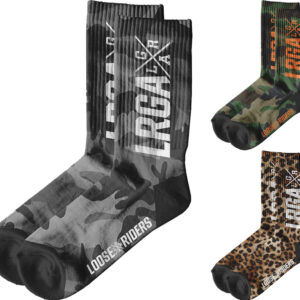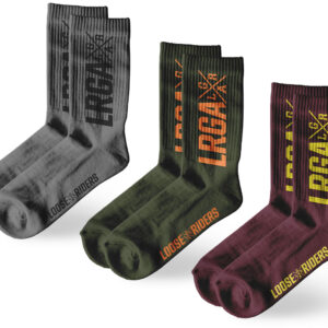 As LRGA são meias MTB premium da Loose Riders feitas de tecido respirável e respirável. Eles fornecem suporte para o tornozelo e pé.