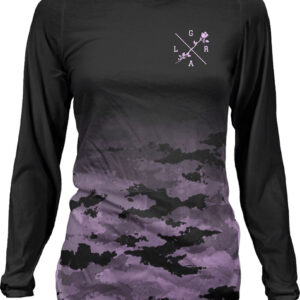 Em até 6x de R$64,80 sem juros À vistaR$365,47no Pix Camisola Loose Riders Lilás Camo - MTB Feminino Manga Longa