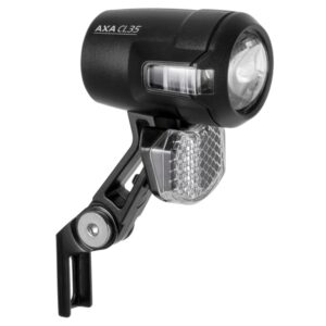 O AXA Compactline 35 é uma lanterna de dínamo compacta e esportiva com uma saída de luz surpreendentemente alta de 35 Lux.