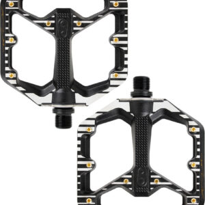 Os pedais planos Millenium 3.0 são feitos de alumínio CNC 6082-T6 com um perfil extra largo e fino para esse nível extra de aderência e folga DH.