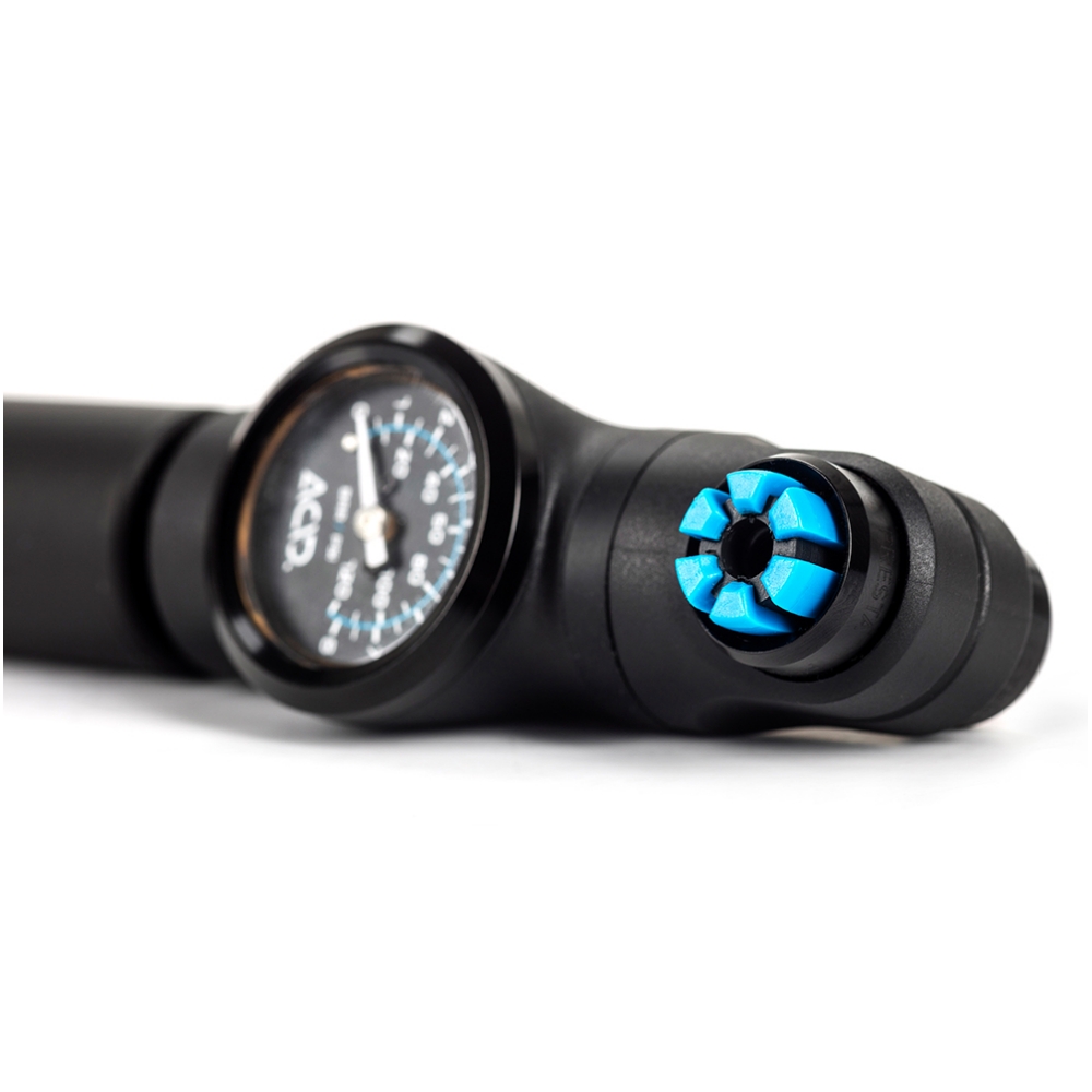 Pressão ou volume? Com a bomba ACID RACE DUAL, você tem a escolha. O sistema de bomba de 2 estágios permite que você escolha entre alto volume e alta pressão e, com o manômetro preciso, você sempre sabe a pressão exata dos pneus. Esta bomba de alumínio torneada CNC é durável e elegante.