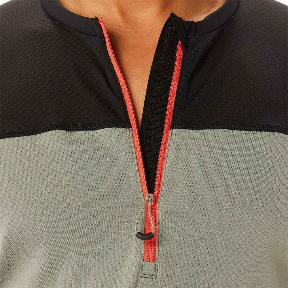 A parte superior Fujitrail™ foi projetada para corredores de trilha que desejam se manter fresco e seco ao navegar em terrenos off-road. O design de meio zíper frontal fornece ventilação adicional quando necessário, enquanto o tecido de malha repelente de suor nas costas e nas mangas ajuda esta roupa a manter-se seca e leve durante e após a corrida. Além disso, a tecnologia de controle de odor é aplicada em áreas-chave para ajudar este top a manter-se fresco por mais tempo. Projetado no Asics Institute of Sport Science no Japão, o Fujitrail ™ Top também tem um bolso traseiro conveniente para armazenar uma jaqueta e outros itens essenciais menores. Por fim, os elementos refletivos na frente e nas costas desta camisa são estrategicamente posicionados para aumentar a visibilidade em condições de pouca luz.