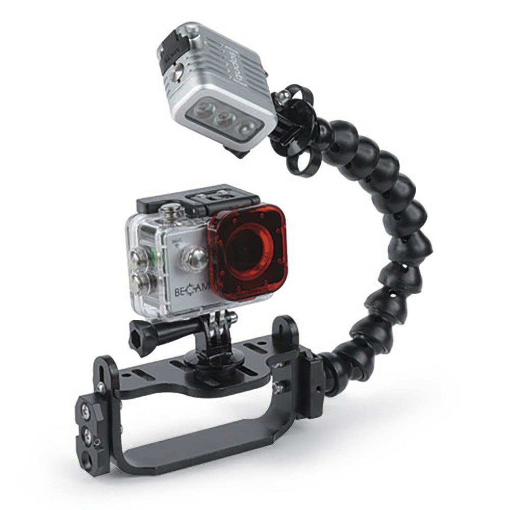 Leve o BECAM 4K com você debaixo d’água até 50 m: o balanço de branco, juntamente com o uso da lente vermelha, permite selecionar o modo certo para o ambiente em que você mergulha.