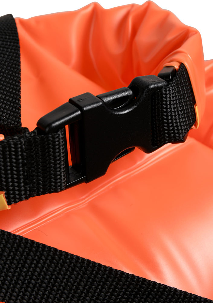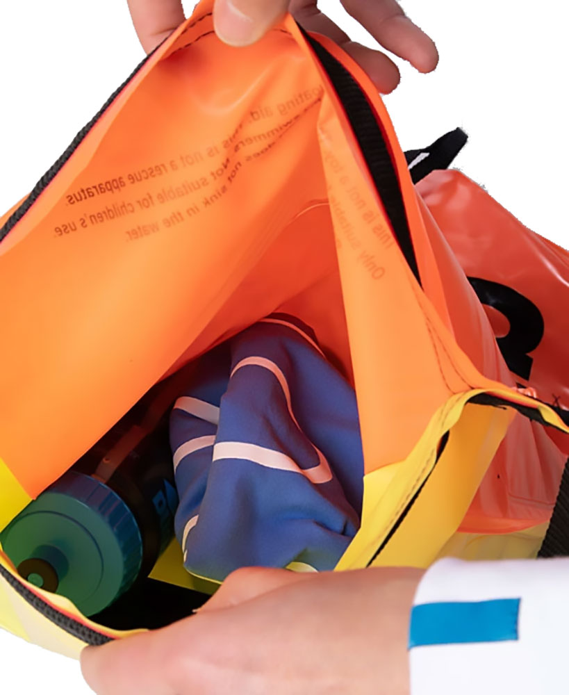 A Arena Open Water Buoy é projetada para nadadores e triatletas que desejam nadar com segurança em águas abertas. Devido ao esquema de cores amarelo-alaranjado, o auxiliar de flutuação está sempre visível na água. Assim você será notado pelos barcos e as pessoas na praia não o perderão de vista.