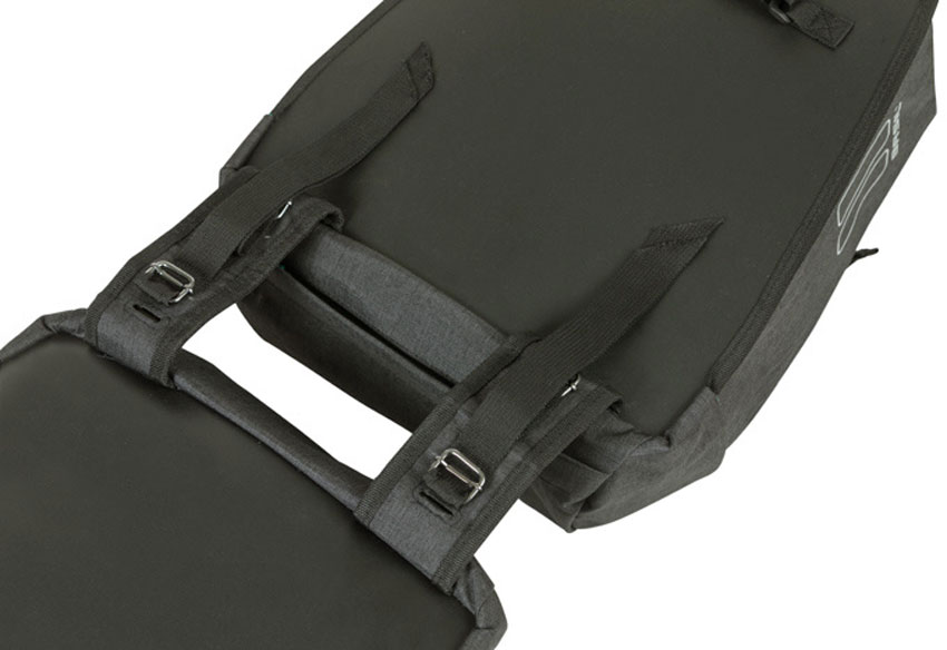 Com capacidade para 18 litros e vários compartimentos, as malas oferecem espaço suficiente para o seu equipamento de lazer como uma garrafa de água, kit de reparação ou uma toalha. Mesmo para uma pequena refeição há espaço suficiente. Com detalhes refletivos, você será visto melhor no escuro. A bolsa de bicicleta dupla vem com um mosquetão no qual você pode pendurar uma garrafa de água. A fixação ao porta-bicicletas é simples e fácil.
