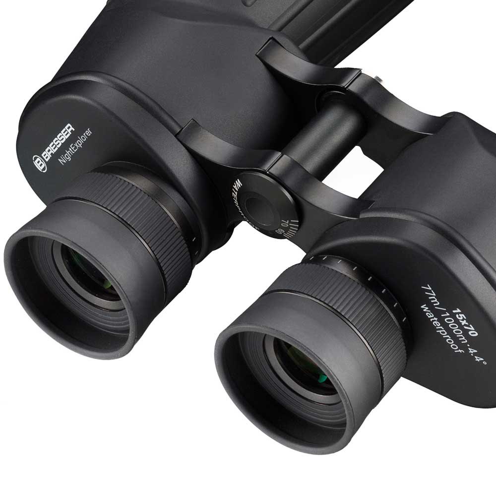 Se você deseja explorar o céu noturno ou fazer observações terrestres durante o dia, os binóculos de astronomia BRESSER NightExplorer 15×70 garantirão que você esteja perfeitamente equipado para todas as suas aventuras ao ar livre. O diâmetro extra grande da lente de 70 mm permite que uma grande quantidade de luz entre nos binóculos, enquanto a ampliação de 15x garante que você obtenha imagens altamente detalhadas de seus alvos observados. A óptica totalmente multirrevestida garante que a luz dispersa seja reduzida ao mínimo, para que você possa desfrutar de uma visão perfeita com o melhor desempenho óptico possível. A uma distância de 1000 metros, o campo de visão é de 77 metros de largura. As oculares altamente corrigidas com 5 lentes em 3 grupos produzem imagens vívidas com bordas nítidas.