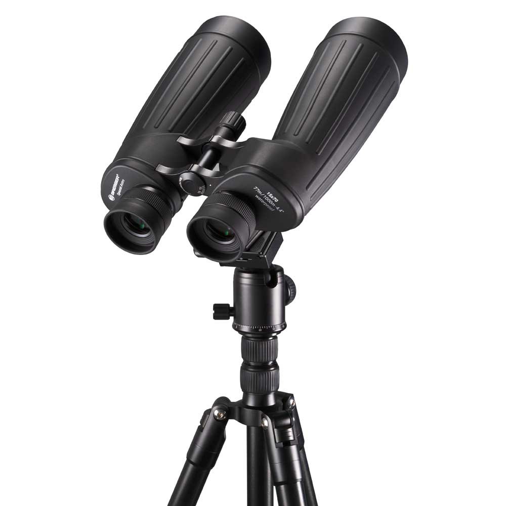 Os binóculos de prisma Porro 15×70 vêm com um excelente tripé de alumínio leve, com montagem de cabeça esférica de estudo, para garantir observações astronômicas ou terrestres sem oscilações. Tanto os binóculos como o tripé podem ser guardados na robusta mochila acolchoada, que também está incluída no conjunto. Isso garante que você possa transportar facilmente seu equipamento para o ponto de vista desejado, mesmo que tenha que percorrer um longo caminho para chegar lá.