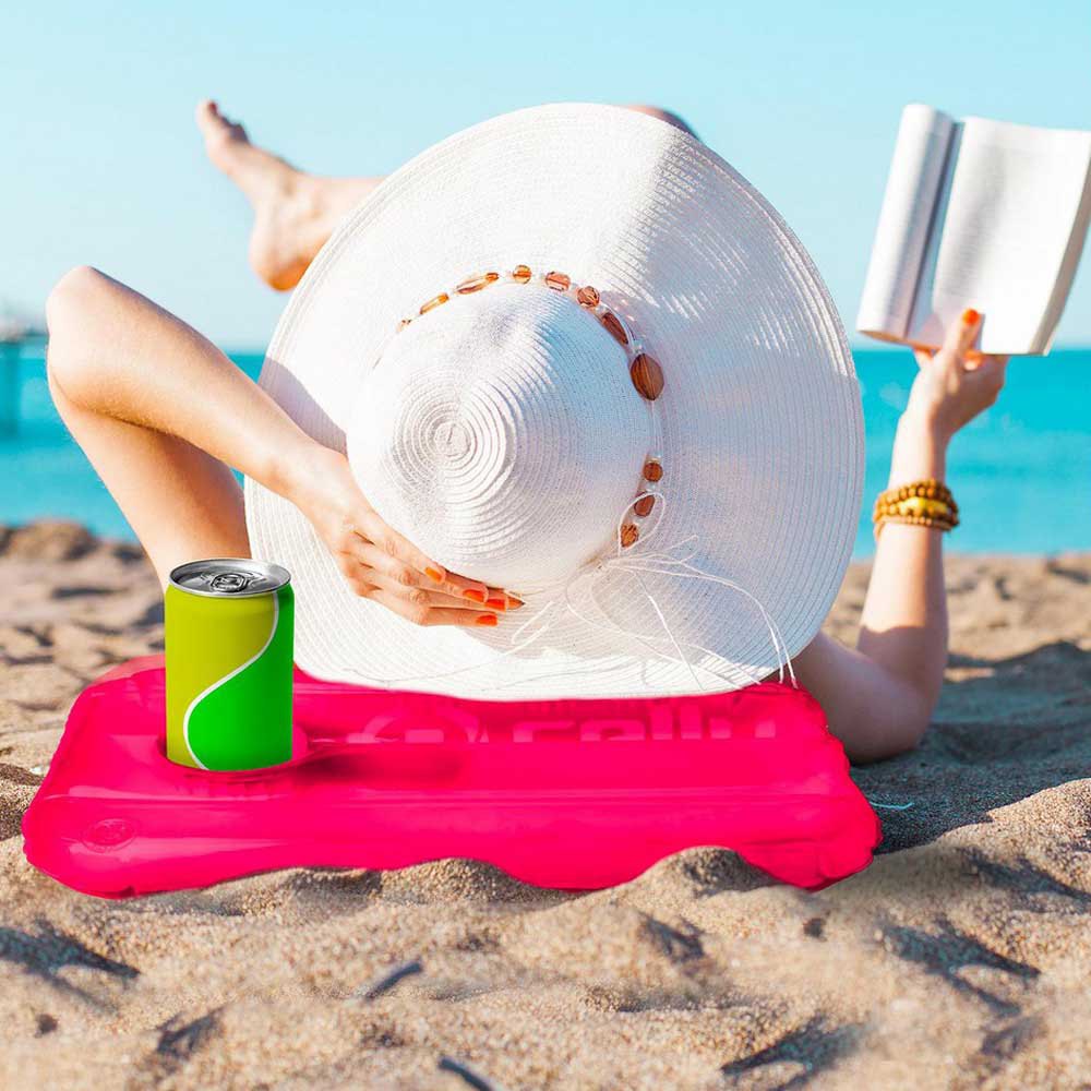 POOL PILLOW até se transforma em um porta-bebidas prático. Durante os dias quentes de verão, aproveite seu tempo de relaxamento na praia enquanto bebe um coquetel.