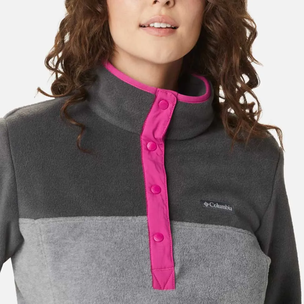 – Nosso famoso velo Benton Springs assume um novo visual neste pulôver macio com um decote snap-up ajustável.