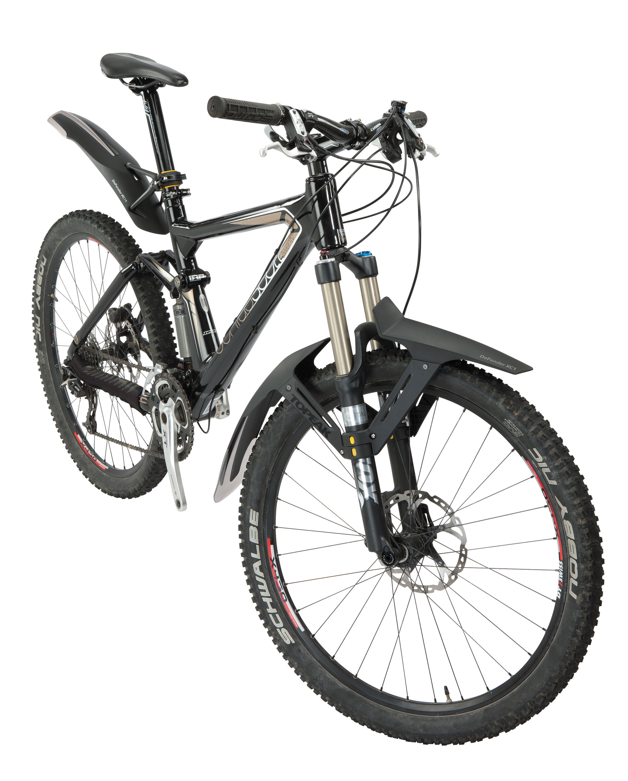 é um para-lama dianteiro leve, de duas peças, inspirado em moto, que se conecta à parte inferior do garfo da suspensão para um ajuste mais próximo ao pneu e excelente proteção contra lama/spray. Um conjunto de braçadeira de precisão prende o para-lama às pernas inferiores do garfo e um recurso de segurança especial permite que ele se solte se uma grande obstrução entrar na roda.