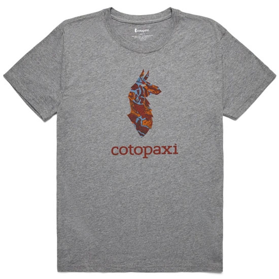 T-shirt de manga curta da marca Cotopaxi . Uma t-shirt confortável com uma chama maravilhosa e caleidoscópica.