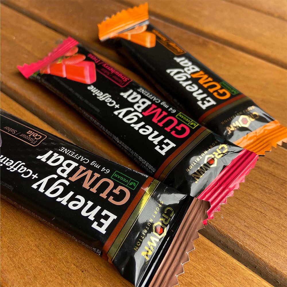4 saquetas de Energy Gel (1x bagas com cafeína, 1x cola com cafeína, 1x limão, 1x laranja):