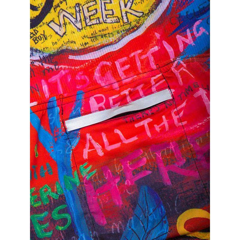 Projetadas para o uso diário, nossas camisas de mangas curtas para ciclismo de desempenho são construídas com tecido leve de alta elasticidade que oferece excelente respirabilidade e ventilação. Encaixe perfeito sem ser constritivo A camisa tem costuras planas travadas para maior conforto e pinças de corte a laser nas mangas para mantê-las no lugar. Uma pinça traseira de silicone para bainha evita que a parte superior suba e um zíper Ykk de comprimento total oferece ventilação extra, se necessário. Três bolsos traseiros e um quarto bolso com zíper são perfeitos para armazenar itens essenciais e de valor para sua viagem. Projetado para mantê-lo em conforto para aqueles passeios diários com um projeto colorido original de ciclologia para chamar a atenção.