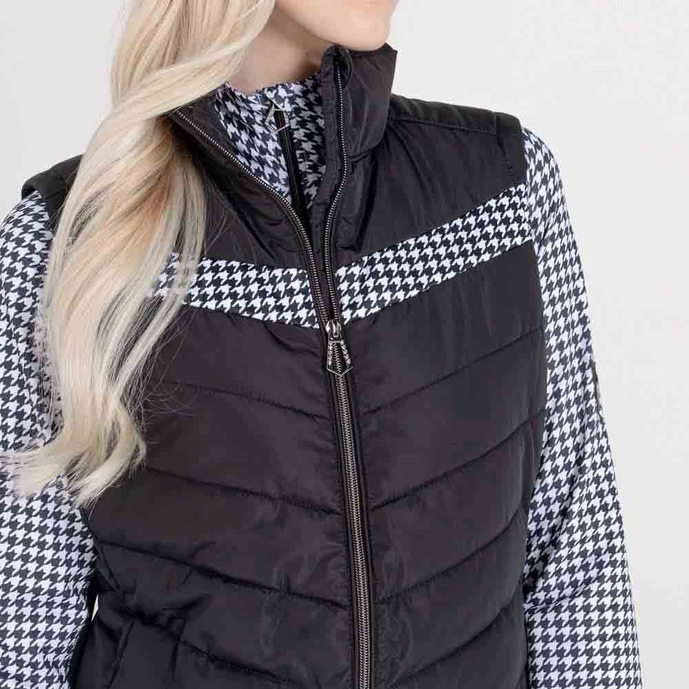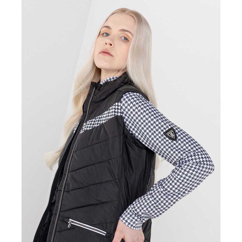 O Polimento Acolchoado Gilet. Feito de tecido com brilho de poliéster supermacio com acabamento repelente de água e acolchoado de alto calor para manter o calor e os elementos do lado de fora. Com emblema de metal e puxadores de zíper embelezados Swarovski para um toque adicional de luxo. Forro estampado para pontos extras de estilo.