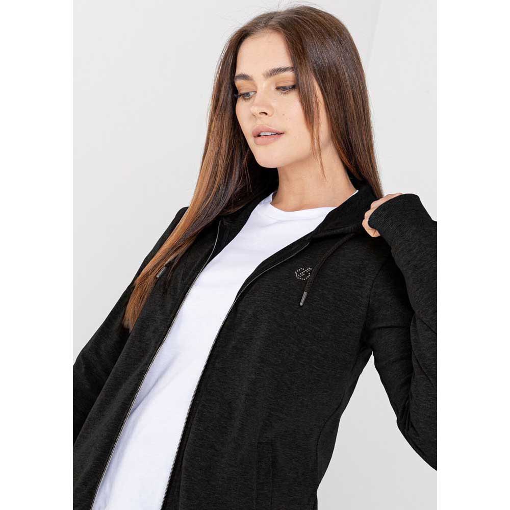The Influence Zip Through Hoodie. Feito de uma mistura de tecido jérsei macio com zíper completo. Com capuz com detalhe de cordão, punhos canelados e bolsos para guardar o essencial. Conforto fácil de usar para o estúdio de ioga, ginásio ou um passeio no parque.