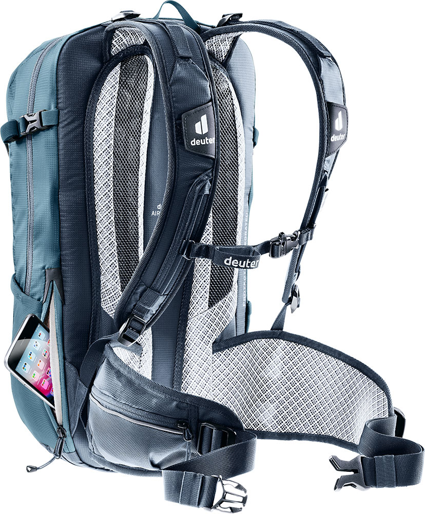 E, claro, há o protetor traseiro certificado pela TÜV/GS que é fácil de remover e oferece segurança máxima para quando as coisas dão errado. O sistema traseiro deuter Airstripes no Flyt oferece excelente ventilação nas costas.