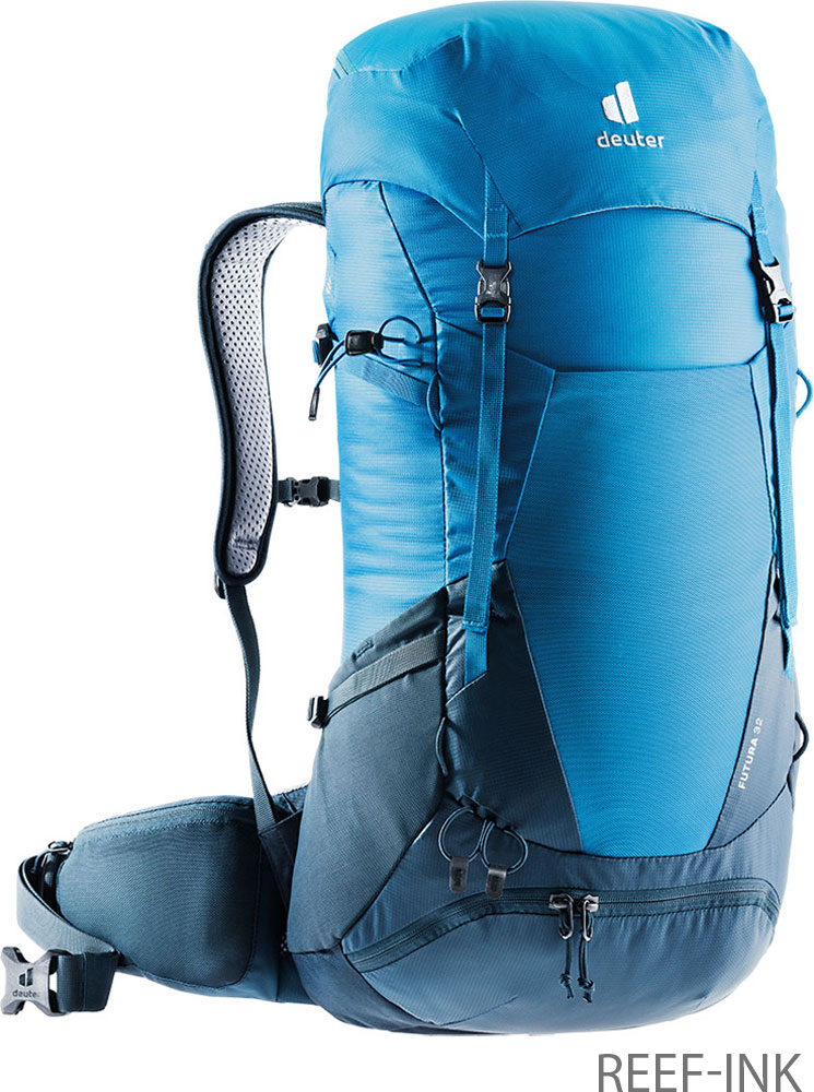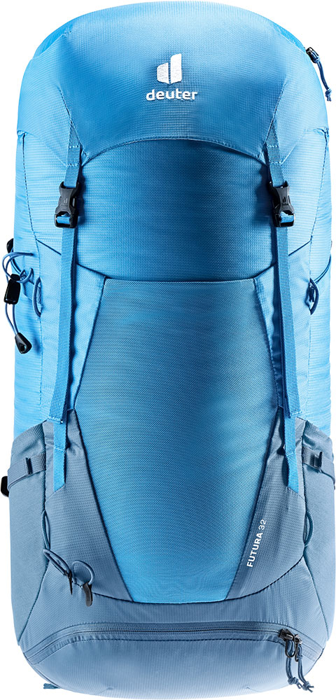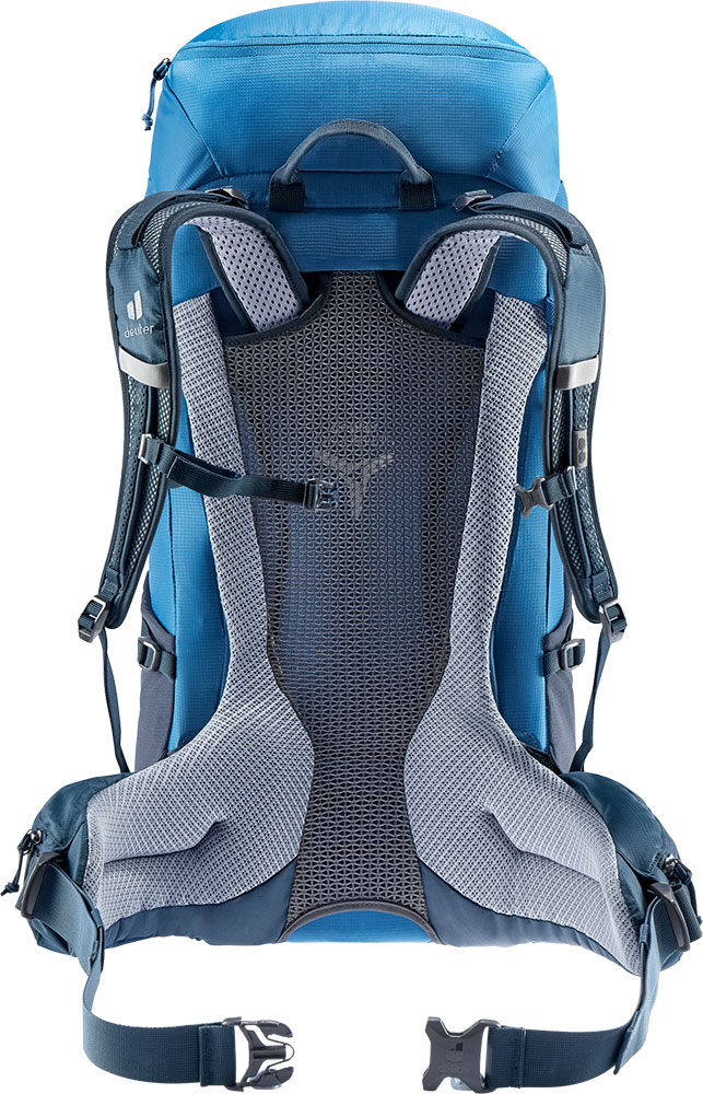 Máxima ventilação, conforto ergonômico e leveza são combinados neste novo sistema de malha nas costas. A construção inovadora da seção da barbatana do quadril e sua transição suave para a malha traseira literalmente envolvem o usuário e garantem um ajuste confortável. A construção flexível da estrutura feita de aço de mola permanentemente elástico e resistente a quebras dá à malha traseira do Aircomfort sua tensão estável. Ele cria de forma confiável um espaço de ventilação entre a mochila e as costas, através do qual o ar úmido escapa sem impedimentos. Com a ventilação de 3 lados patenteada Deuter, o usuário sua até 25%* menos. A alta flexibilidade de toda a construção dá ao usuário liberdade de movimento.