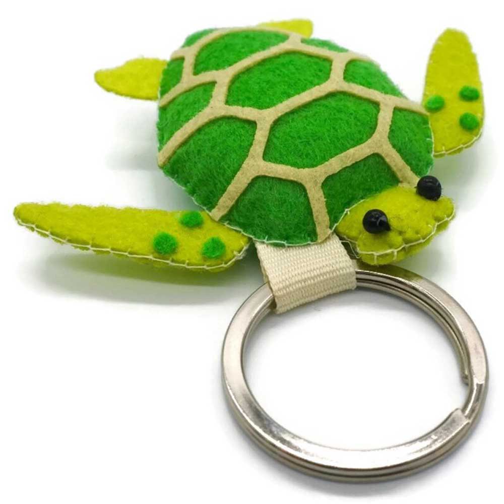 Chaveiro ensolarado de feltro da tartaruga de mar verde