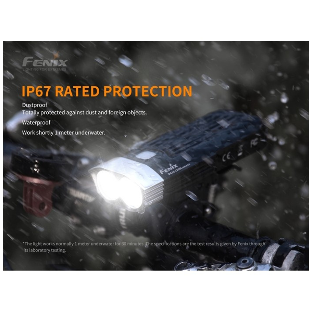 A luz de bicicleta Fenix BC30 V2.0 é uma luz de bicicleta profissional projetada especificamente para mountain bike. Com uma saída máxima de 2200 lúmens, a luz oferece uma ampla faixa de iluminação, portanto, as condições da estrada são muito claras. Além do interruptor de controle sem fio recém-instalado, a luz funciona muito bem na operação remota instantânea e na seleção de diferentes saídas. Além disso, a carcaça é totalmente metálica para melhor dissipação de calor, o suporte para fixação na bicicleta é mais estável e a bateria pode ser substituída. A luz de bicicleta BC30 V2.0 é a opção de iluminação ideal para a sua bicicleta de montanha.