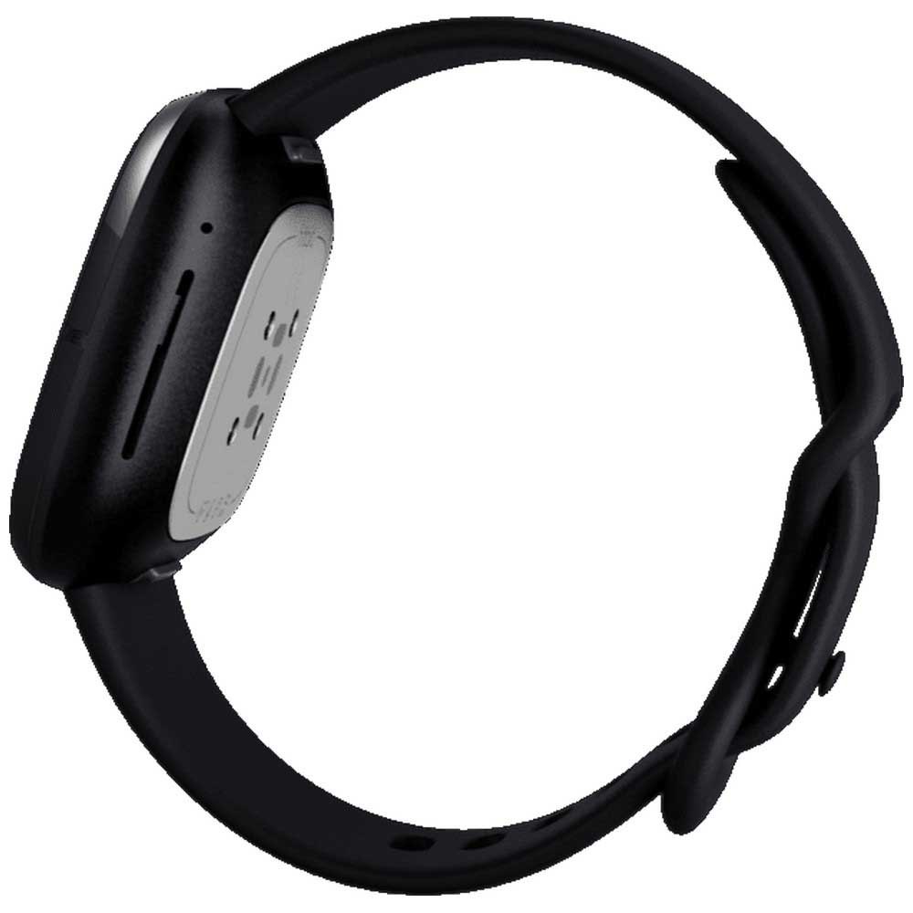 O sensoriamento da temperatura da pele, o rastreamento da frequência cardíaca e o carregamento da bateria ocorrem dentro deste poderoso hub resistente à água na parte de trás do Sense.