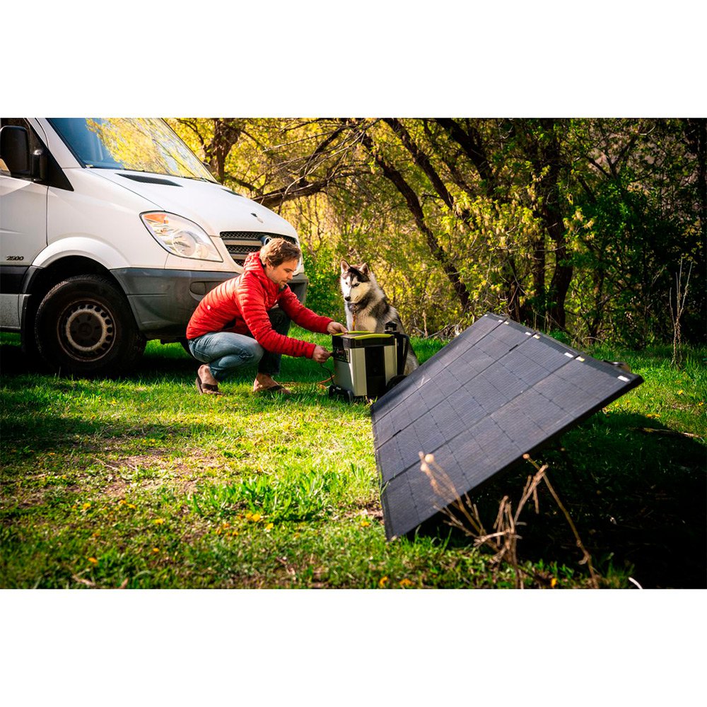 Design conveniente e dobrável: quatro painéis de 75 watts, totalizando 300 watts, encadeados e conectados na dobradiça. Embale e transporte facilmente o Ranger 300 de um lugar para outro e guarde-o quando não estiver em uso.
