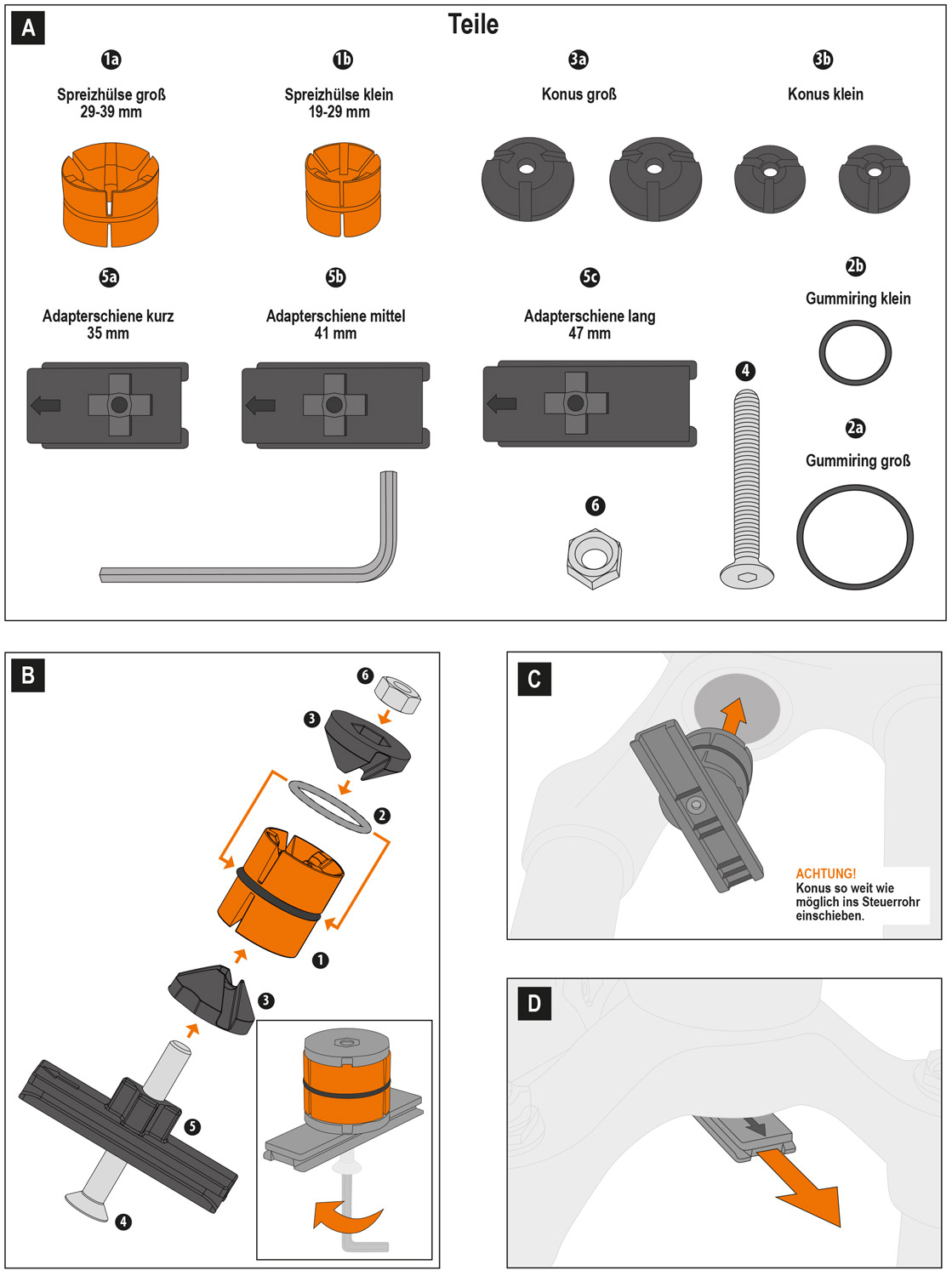 - 1 x Conjunto de montagem 2.0 (cone 1 19 – 29 mm e cone 2 29 – 39 mm)