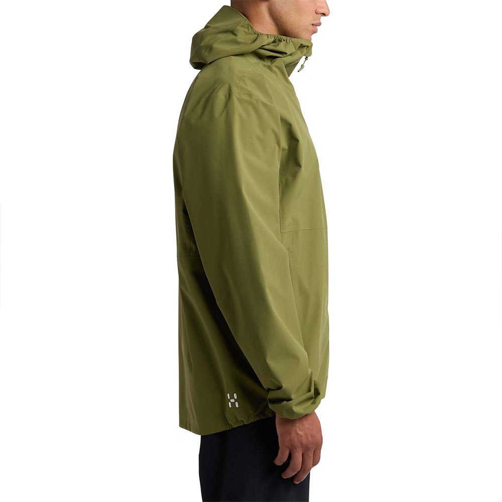 Esta jaqueta impermeável é feita com tecido PROOF de 2,5 camadas de poliéster reciclado , por isso é altamente resistente ao desgaste e à luz, expulsa a umidade para fora e seca rapidamente. Além disso, possui tratamento DWR que evita a entrada de água em seu interior. Seu design inclui um capuz elástico, punhos elásticos, bainha elástica e bolsos com zíper para as mãos e é fácil de dobrar no bolso.