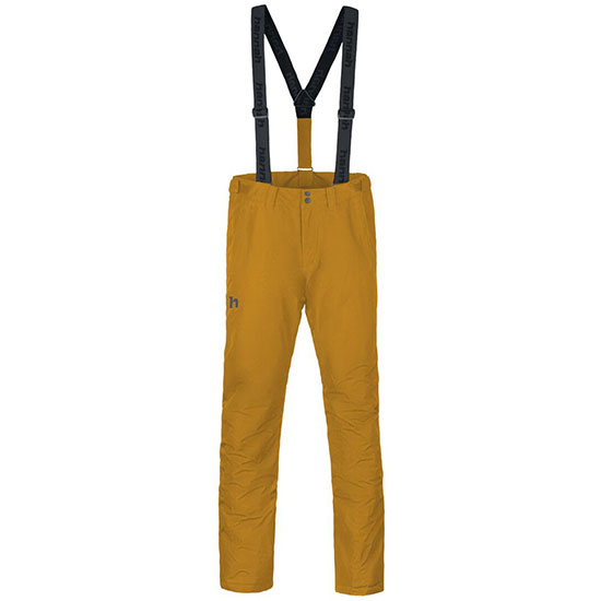 Calça de esqui masculina Hannah Slater . A membrana Resstex com coluna de água de 10.000 mm juntamente com as costuras seladas garantem a impermeabilização do material. Joelhos com formato anatômico, assento elevado, cinto ajustável com velcro de borracha ou suspensórios removíveis contribuem para o conforto nas pistas. A ventilação na parte interna das pernas não é apenas um dispositivo prático, mas também um elemento de design. Um punho de neve não deve faltar nas calças. Características: