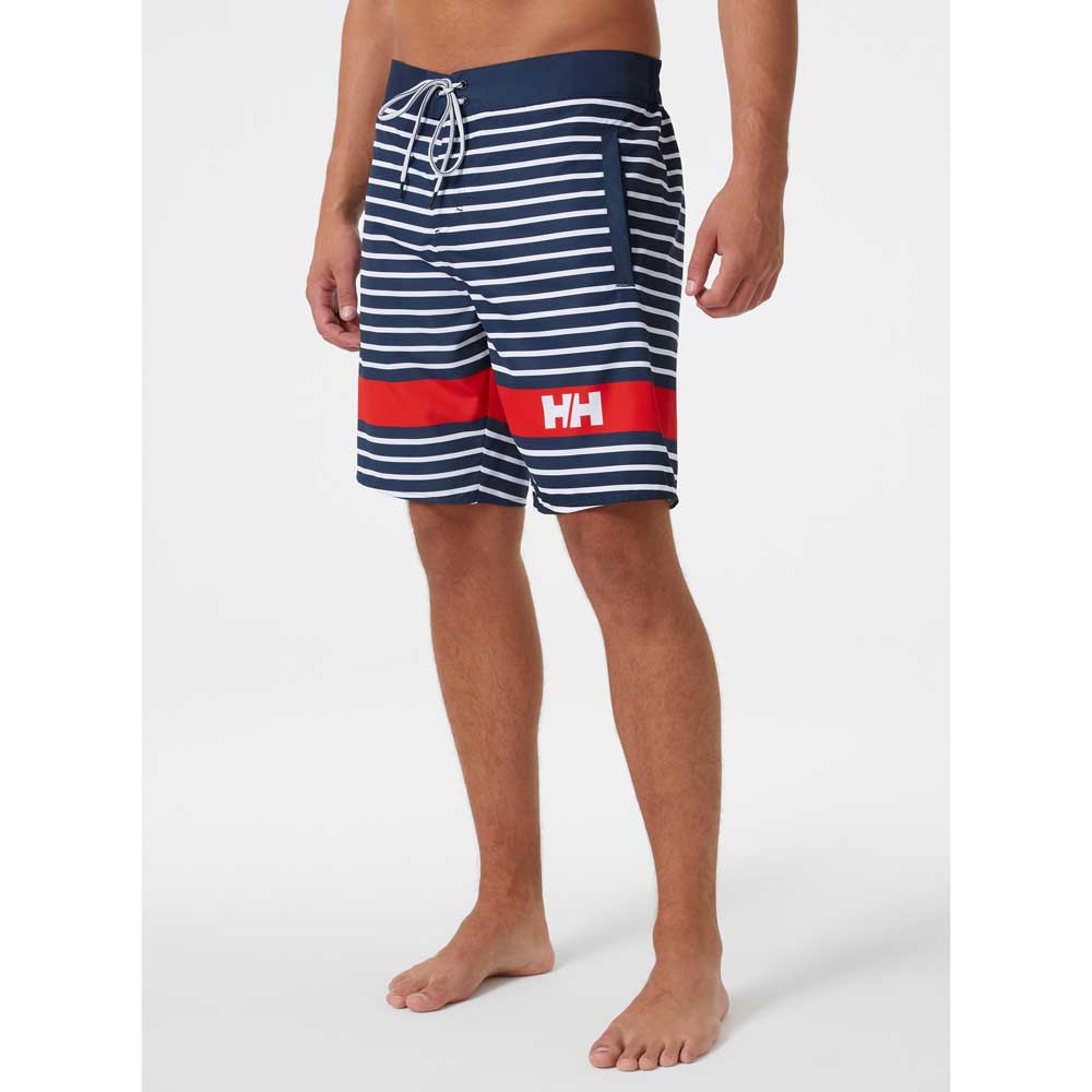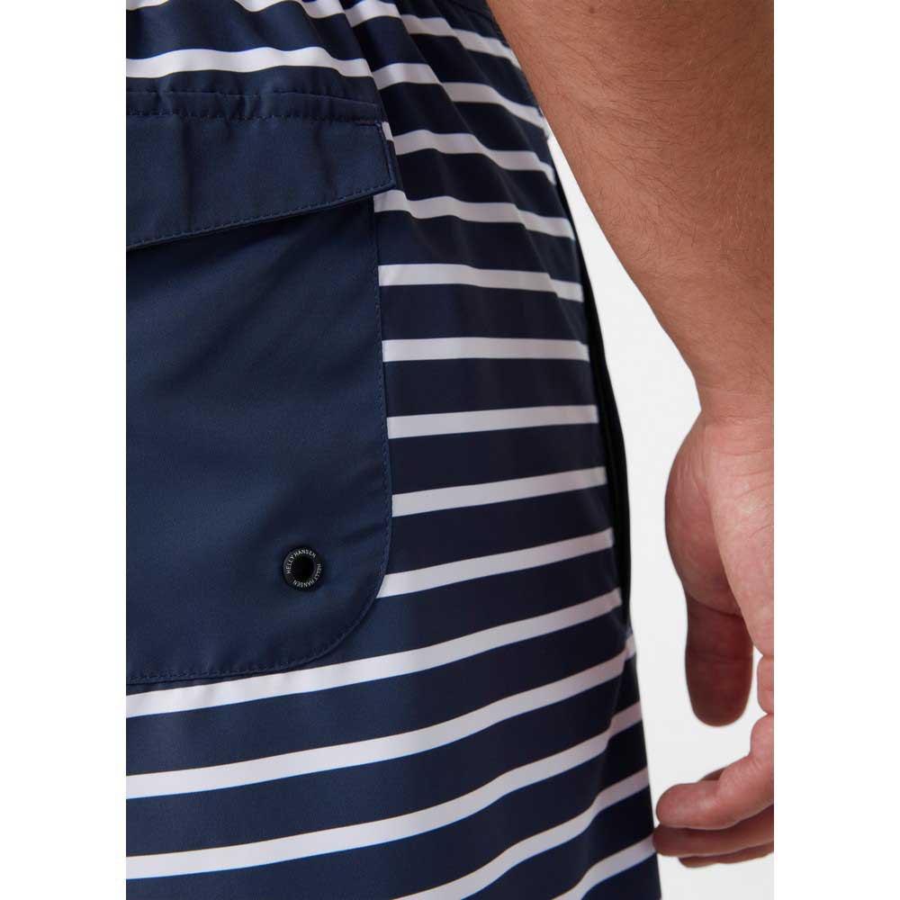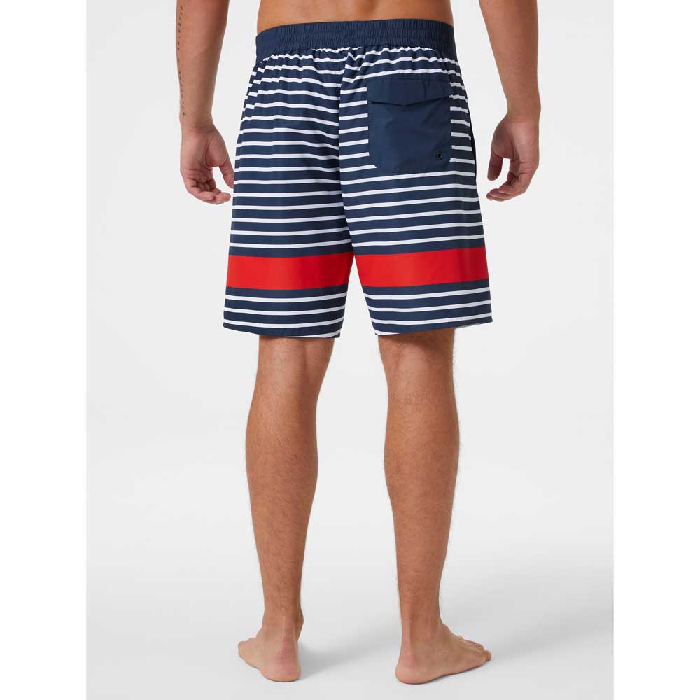 Os nossos calções de banho clássicos têm um corte ligeiramente mais comprido do que os calções de banho normais e apresentam o nosso icónico gráfico de riscas com a bandeira Helly Hansen®.