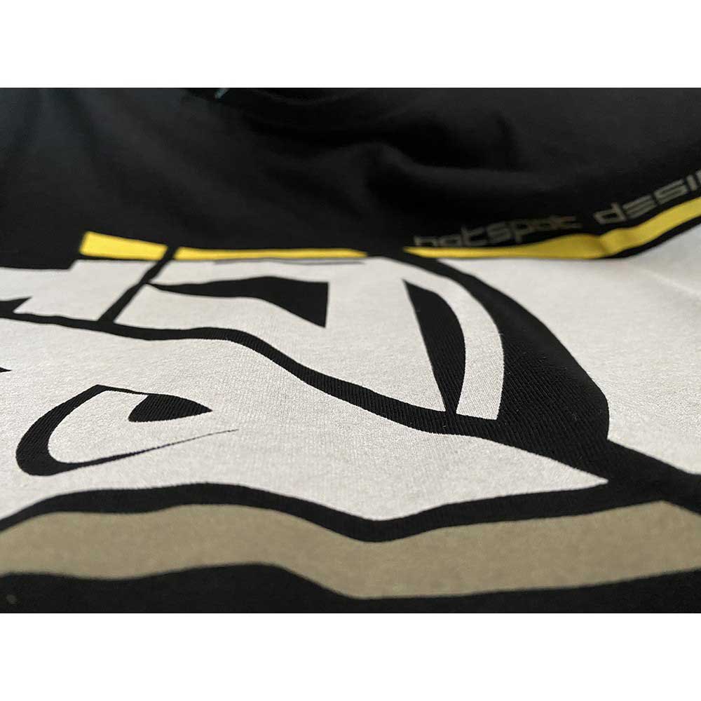 Adicione este produto especial ao seu guarda-roupa com a t-shirt com faixa no peito com desenho de riscas em blocos de cores, na frente está destacado o logótipo Hotspot Design e nas costas o seu peixe preferido.