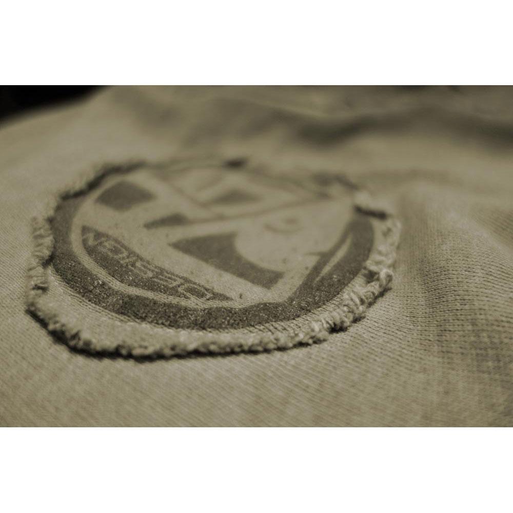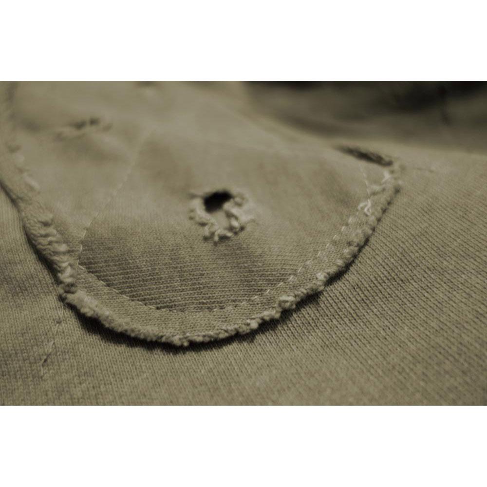 Os destaques são os patches de cotovelo com uma dispersão de buracos mordiscou, patches de frente com bordas desgastadas, vários detalhes rasgadas e cortadas que dão à peça uma aparência mais andares simulando o desgaste natural e briga.