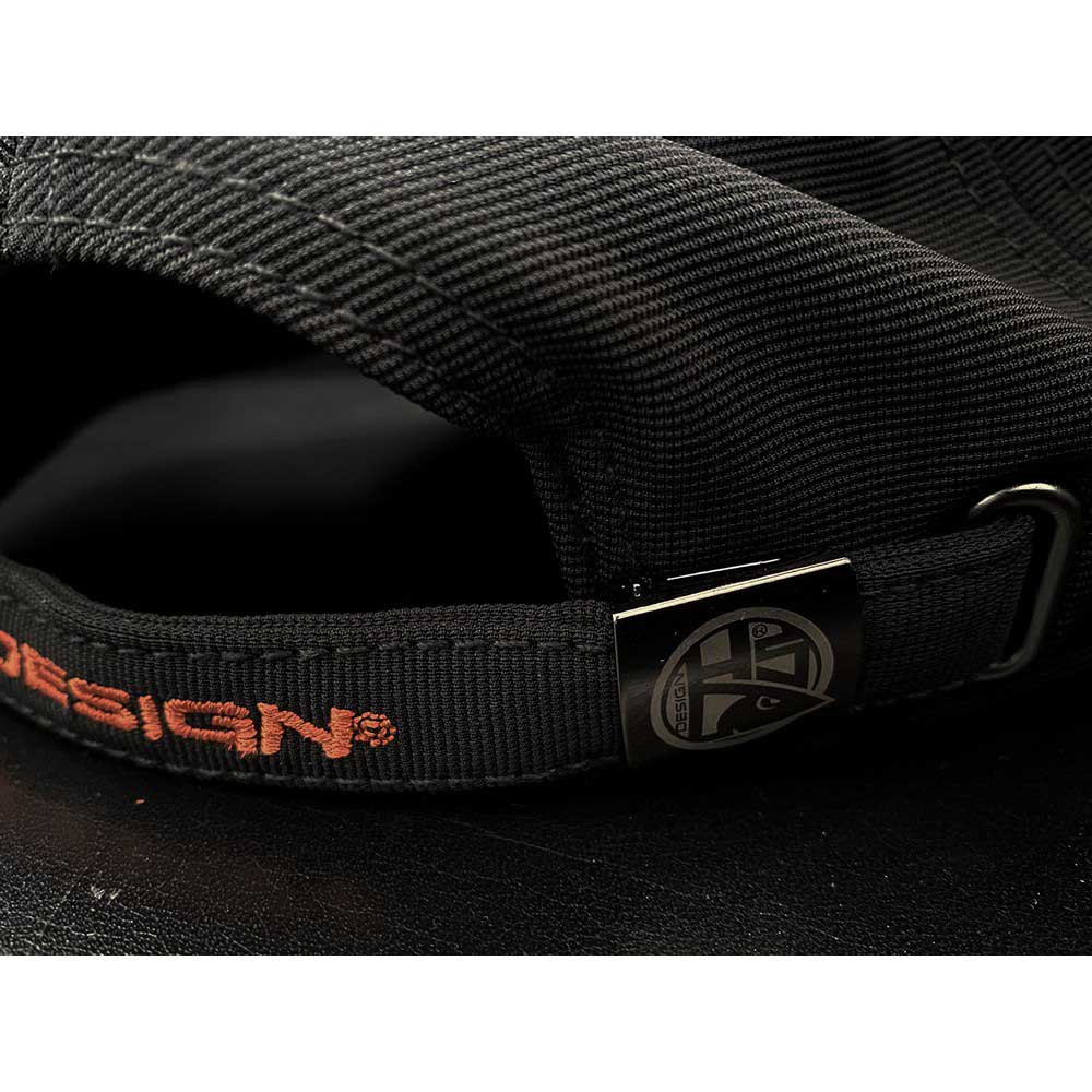 Parte traseira: em tecido próprio com fivela de metal para ajuste da circunferência do gorro. Na fita logo Hotspot Design bordado. Fivela de cetim com logotipo Hotspot Design.