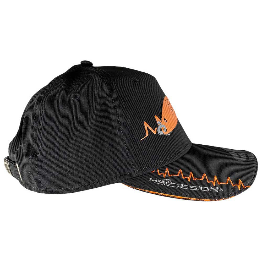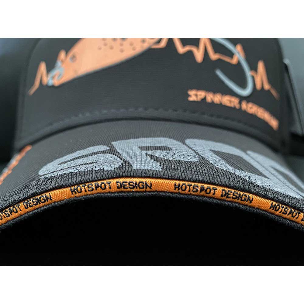 Visor: Colher com texto impresso e linha “adrenalina” e logo Hotspot Design bordado, sanduíche em cor de contraste com logo Hotspot Design estampado em todo o comprimento.