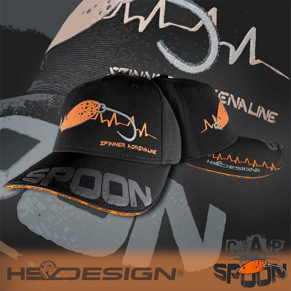 Boné frontal: Spoon lure em estampa bem evidente em relevo com linhas de “adrenalina” bordadas nas duas faces.