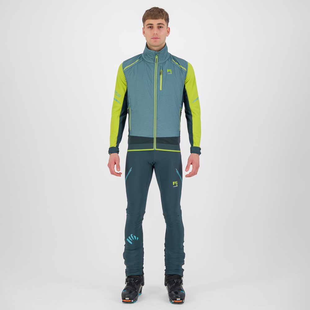 Graças à sua construção híbrida, à prova de vento na frente e respirável e quente atrás, também pode ser usado para outras atividades ao ar livre de inverno, como corrida de trilha e caminhada leve.