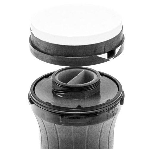 Este filtro é compatível com a maioria das garrafas padrão (boca de 63 mm) e reservatórios de hidratação.